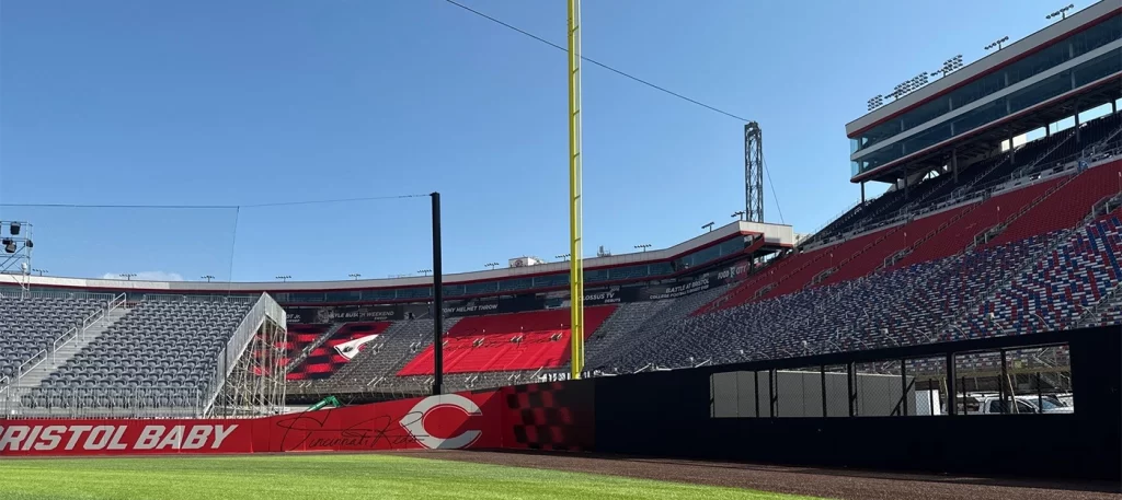At Sportsfield Specialties we’ve always prided ourselves on delivering the highest-quality products for sports venues, ensuring safety, durability, and performance. The opportunity to partner with the groundbreaking Major League Baseball game at Bristol Motor Speedway was a true milestone. This historic event, which brought the MLB to one of the most iconic racetracks in the world, provided us with the chance to showcase some of our premier products in a unique setting.