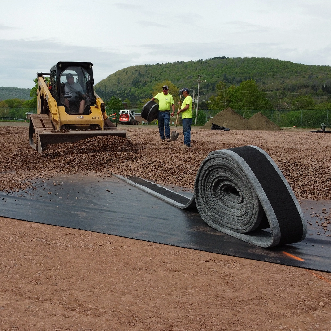 Hydraway® is made of a heavy duty, clog resistant geotextile fabric, heat fusion bonded to a rugged High-Density Polyethylene (HDPE) core for strength and support. Specifically engineered design permits high flow rates for rapid dewatering of the turf area while effectively preventing passage of soil particles.