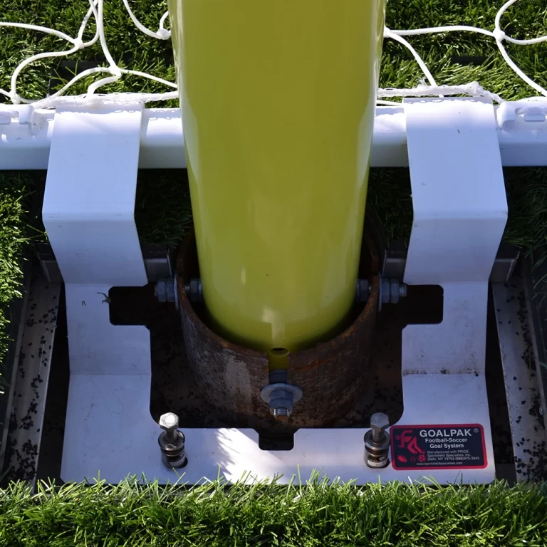 GoalPak® lockdown safety systems are designed for both synthetic turf and natural grass applications. The synthetic turf model includes an infill retainage gasket and perimeter turf attachment to prevent turf infill from entering the access frame kit.